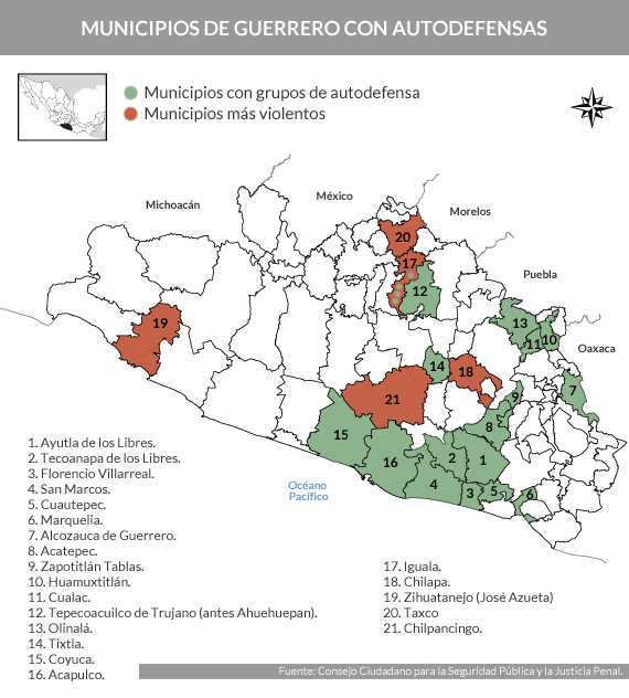 El 26 y 27 de septiembre de 2014 en el municipio Ayotzinapa de la ciudad de Iguala, estado Guerrero (suroeste de México), desaparecieron 43 estudiantes de la Escuela Normal Rural Raúl Isidro Burgos, tras la represión del cuerpo policial local, que entregó a los jóvenes a la banda criminal "Guerreros Unidos" y hasta la fecha solo se han encontrado los restos de dos de ellos.