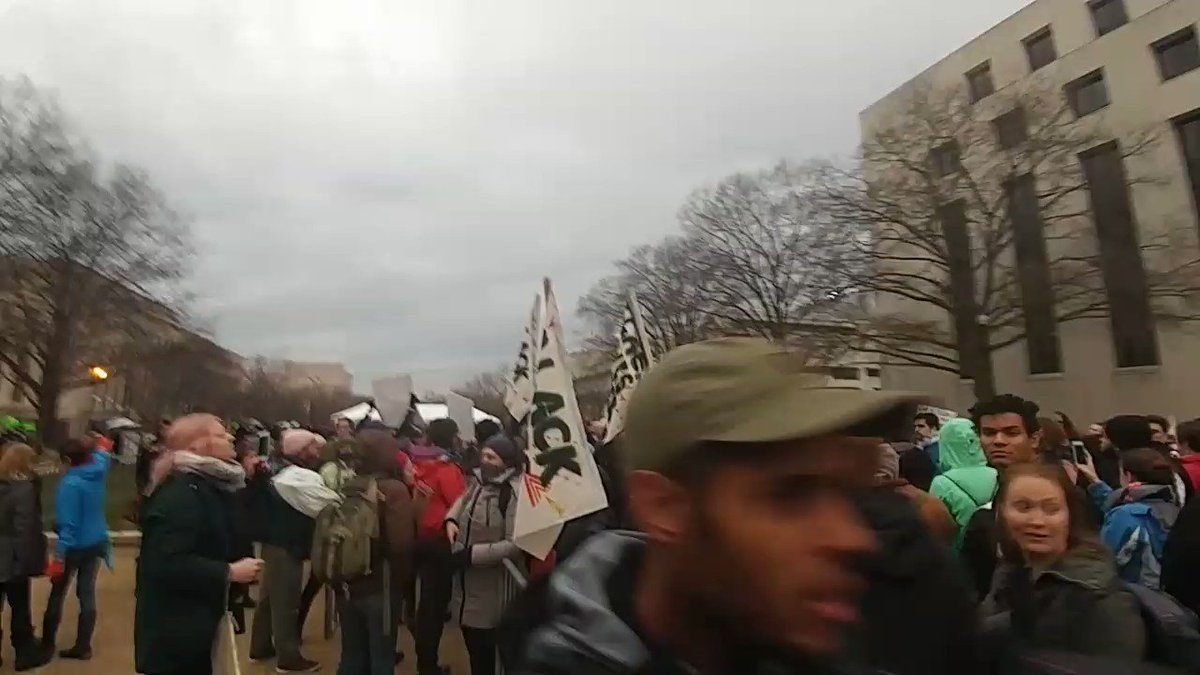 Teargas, cops in riot foot and protesters breaking windows. pic.twitter.com/WiSo92Qo3L— Patrick Madden (@Patrick_Madden) 20 de enero de 2017