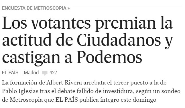 Con sus propios datos. El País vuelve a obsequiarnos con una encuesta para Metroscopia en la que, de nuevo, los resultados coinciden con su línea editorial.